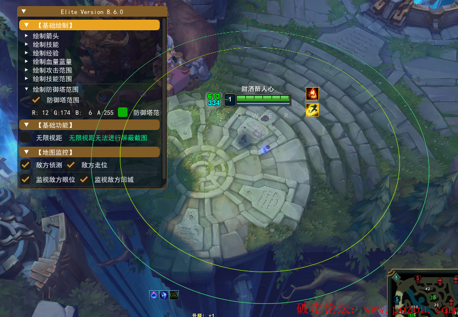 基础汇总: 敌友技能CD Gank线条提示 敌方防御塔范围 攻击范围 技能范围