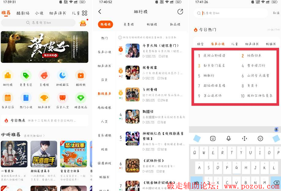 我们可以从软件的听书排行榜单中查看当前的热门小说